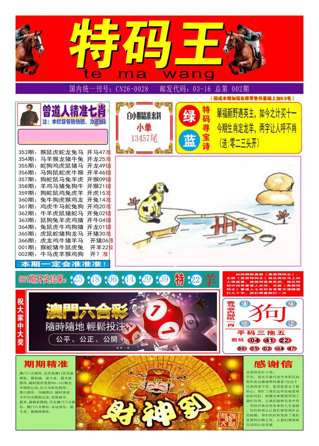 002期:包租公→推荐⑥肖12码→开?00准 |